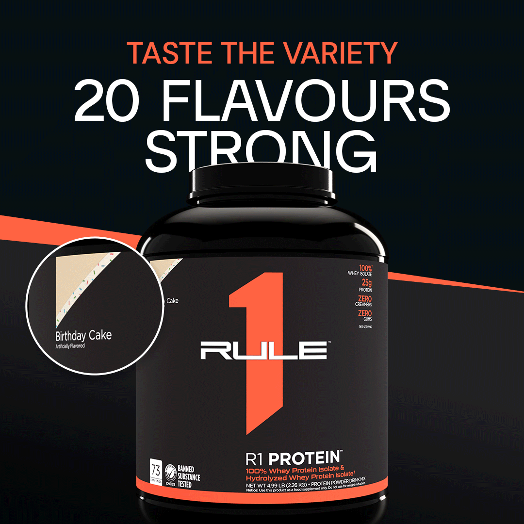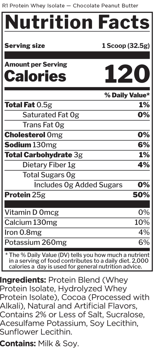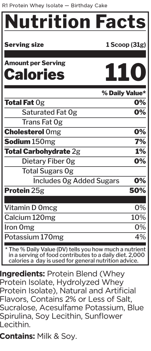 By using super-pure 100% whey isolate and fast-acting whey hydrolysate, while completely omitting the use of whey concentrates, creamers, gums, and other fillers, we’re left with an industry leading Protein Purity Percentage (PPP) of up to 87%*. Gram for gram, R1 Protein has more fast-acting whey protein per unit of volume…period.