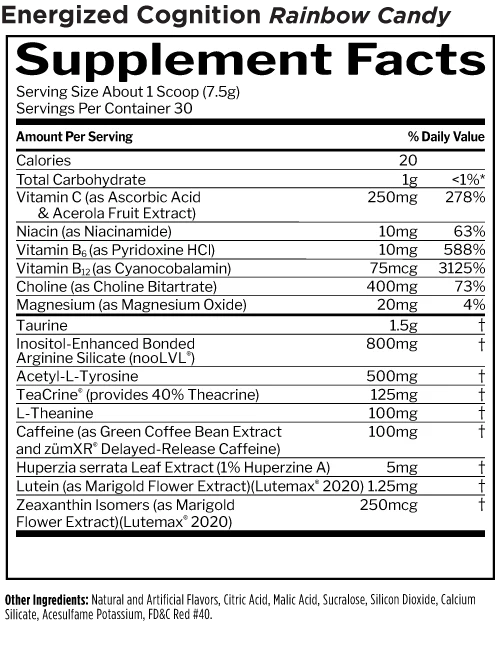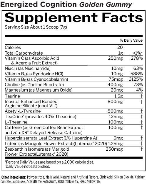 Fight off fatigue. Beat back the brain fog. Tackle your next task. With researched, licensed, and patented ingredients like nooLVL®, TeaCrine®, zumXR®, and Lutemax® as well as L-theanine, choline, tyrosine, and green coffee caffeine, Energized Cognition is designed to help keep you sharp, energized, and focused.^